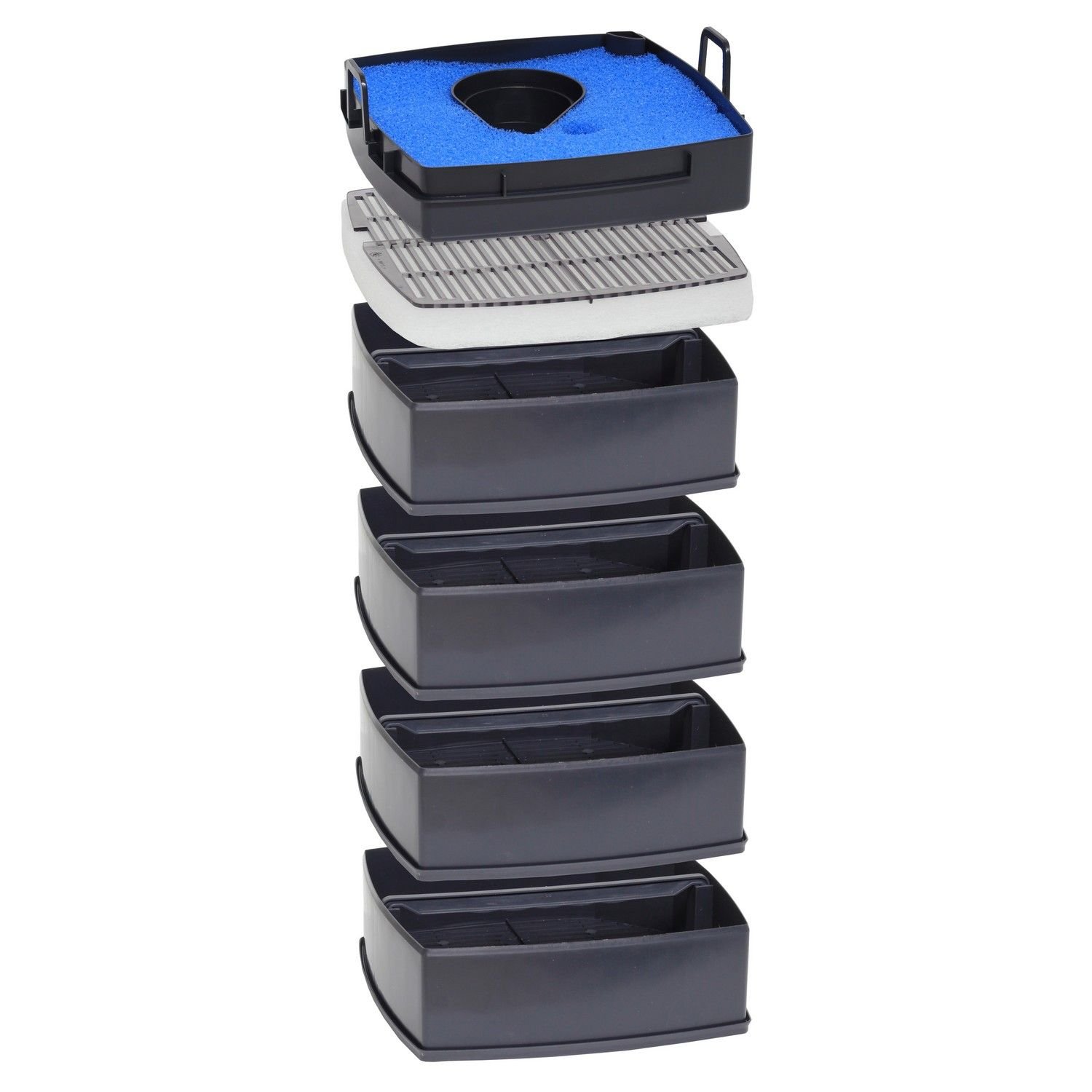 Великий попередній фільтр, розташований безпосередньо під головою насоса — для швидкого очищення від механічних забруднень без втручання в біофільтрацію